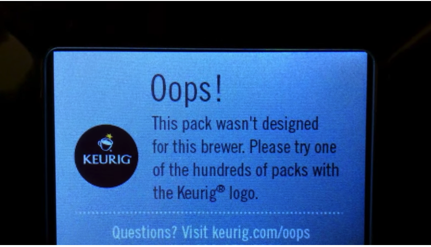 Otro ejemplo son las cápsulas de café para máquinas de café como Nespresso o Keurig. Si bien hay en el mercado cápsulas de terceros para Nespresso, casi no es posible encontrar alternativas de terceros para máquinas de café Keurig. Keurig modificó el diseño de sus cafeteras para que solo acepten cápsulas de marca Keurig.