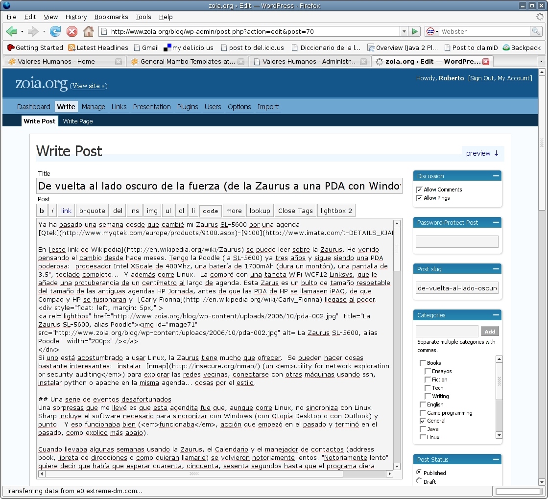 ¿Quieres hacer un blog? Usa Wordpress u otro software de blogs. Salvo que seas un usuario experto, estés experimentando con Mambo en sí (o confundas el fin con los medios…), o te sobre tiempo, Mambo quizá es un cañón de demasiado calibre.