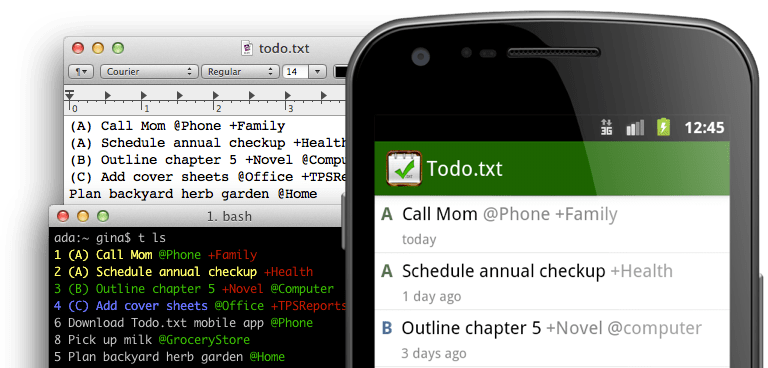 alt: I’ve switched back to Gina Trapani’s todo.txt, which is just a command line interface to a plain text file. Syncing can be done through Dropbox, and there are several apps available for iOS and Android. I’ve used todo.txt before, so its text interface feels natural to me[2](#fn-3417-cli title: todotxt-apps_lrg).
