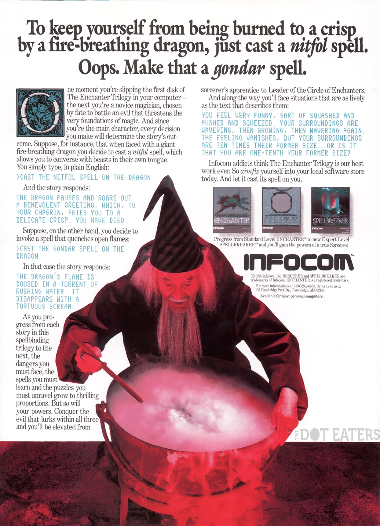 I had a great time in the 80s immersing myself into Infocom’s text adventure games. From the Zork trilogy to Enchanter to The Hitckhicker’s Guide to the Galaxy.